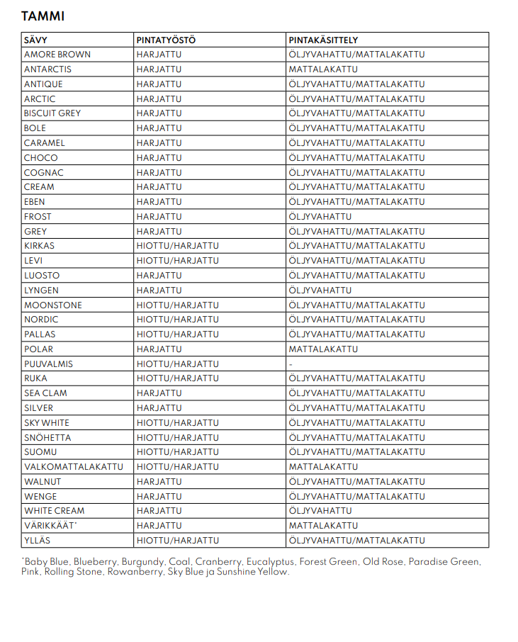 Pintakäsittelyvaihtoehdot:
