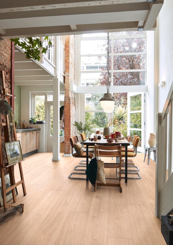 Leveät lankut antavat huoneelle arvokkuutta ja tekevät tilasta yhtenäisen ja ilmavan. Tämä parketti sopii erityisen hyvin koteihin, joissa arvostetaan valoisuutta ja luonnollista tunnelmaa.
